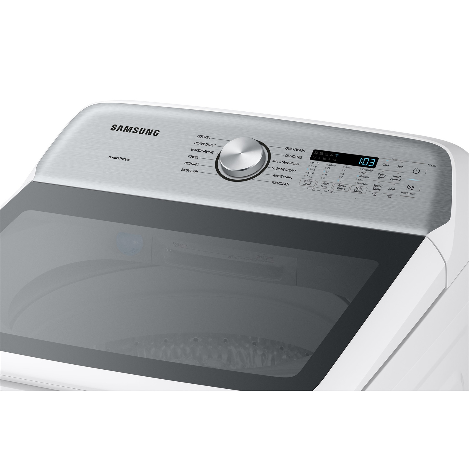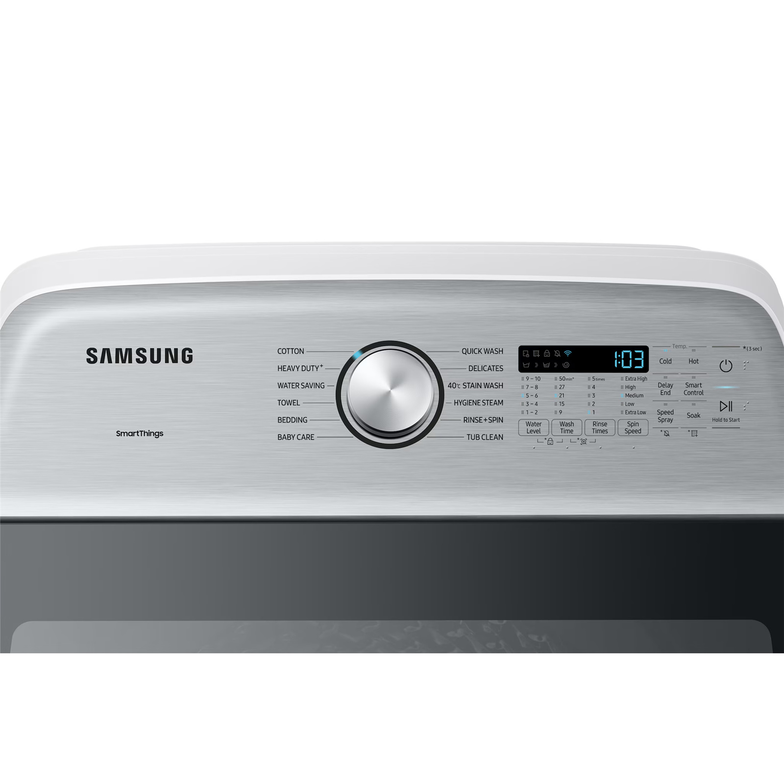 Water Level, Wash Time, Rinse Times, Spin Speed, Cold/Hot, Delay End, Smart Control, Speed Spray, Soak
