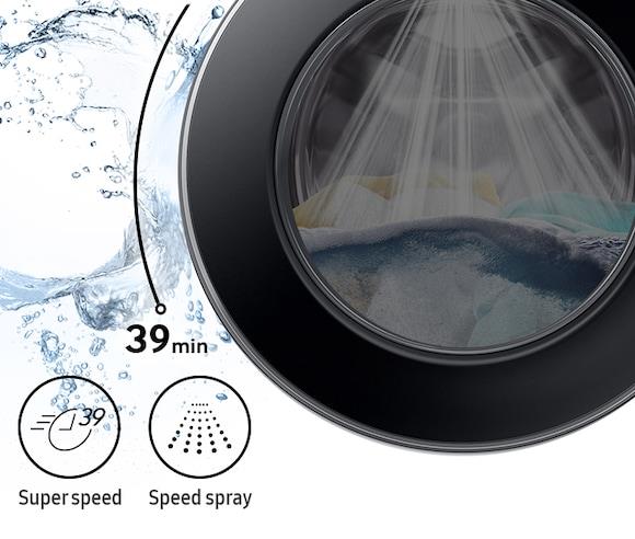 Cut your daily laundry time and get clothes thoroughly clean. Use Super Speed to wash a load in just 39 minutes*. BubbleWash™ ensures powerful cleaning. The rinsing time is shortened using Speed Spray and it accelerates the spin speed.