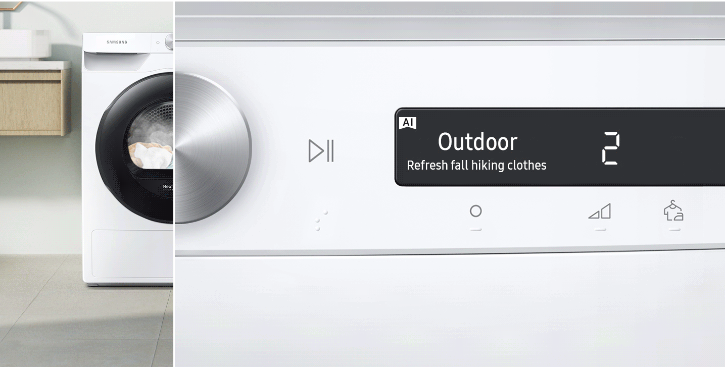 Dry laundry easily and effectively with Al Control. This Heat Pump Dryer personalises drying by remembering your habits, suggesting cycles and displaying timely information. Using the SmartThings app*, it helps select the ideal drying course for a wash cycle**, and provides advice on cycles, planning and troubleshooting.