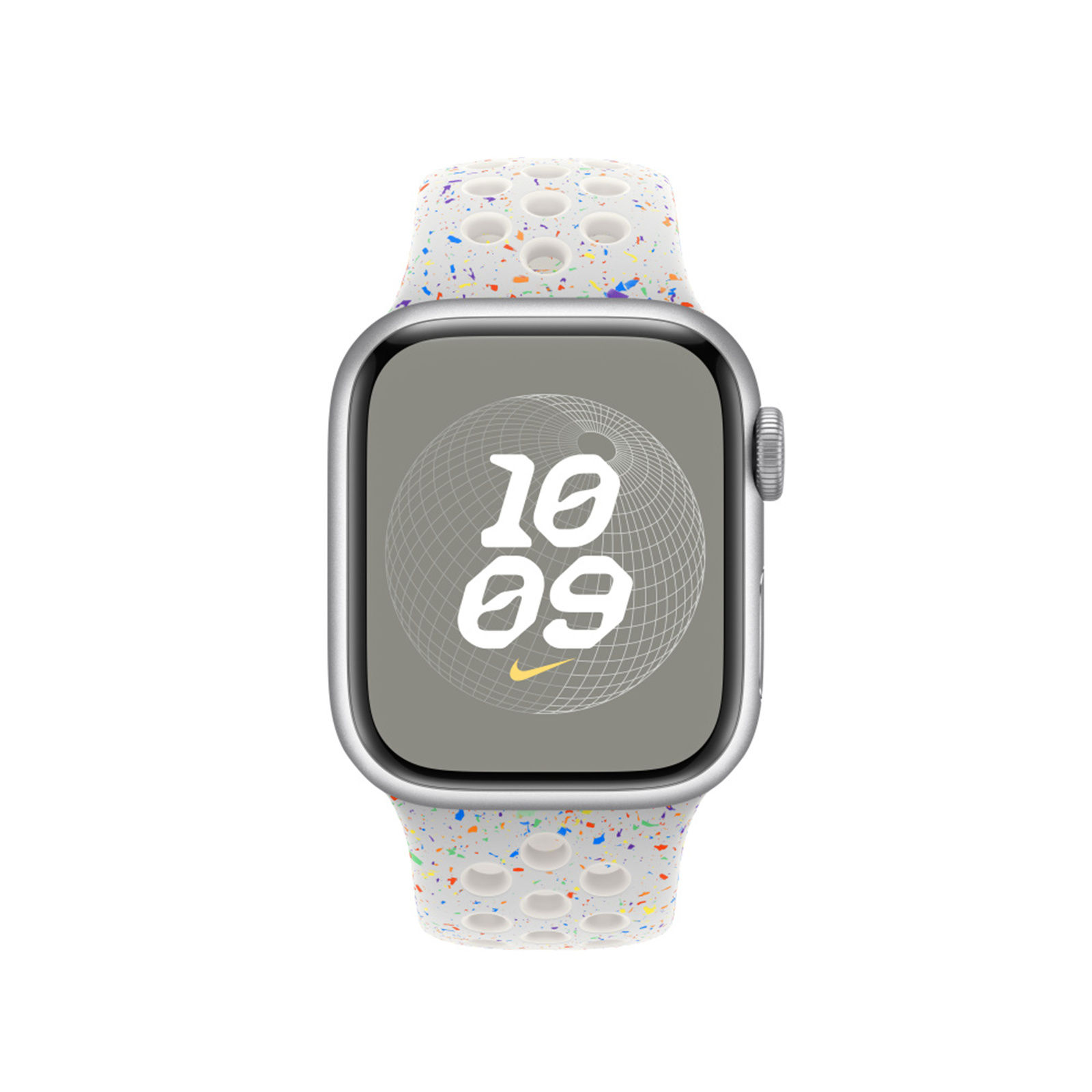 Made with compression-moulded perforations for breathability, the Nike Sport Band is durable and strong, yet surprisingly soft. It features colourful flakes that create a randomised pattern, making each band completely unique. The smooth, dense material drapes elegantly across your wrist and feels comfortable next to your skin. A new aluminium pin-and-tuck closure gives the pin a fresh matt finish.
