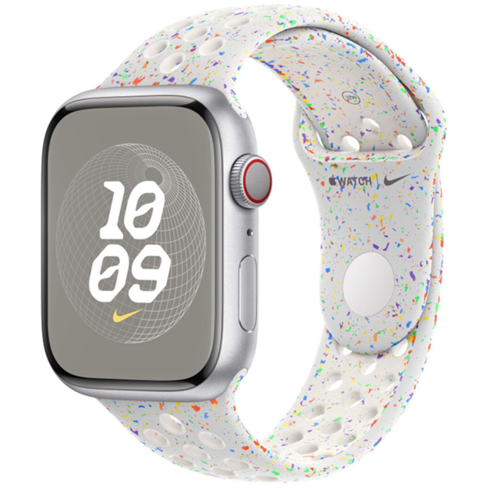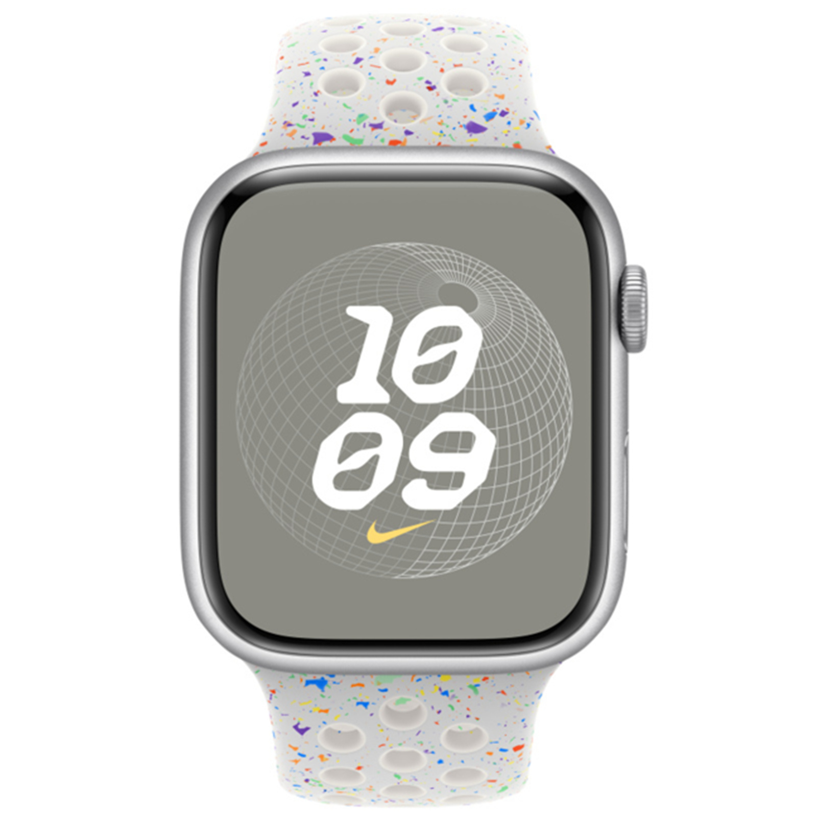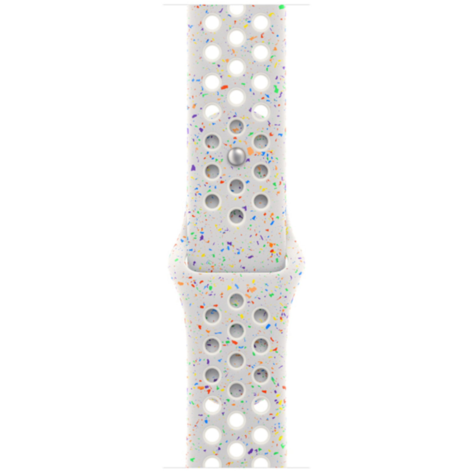 Made with compression-moulded perforations for breathability, the Nike Sport Band is durable and strong, yet surprisingly soft. It features colourful flakes that create a randomised pattern, making each band completely unique. The smooth, dense material drapes elegantly across your wrist and feels comfortable next to your skin. A new aluminium pin-and-tuck closure gives the pin a fresh matt finish.