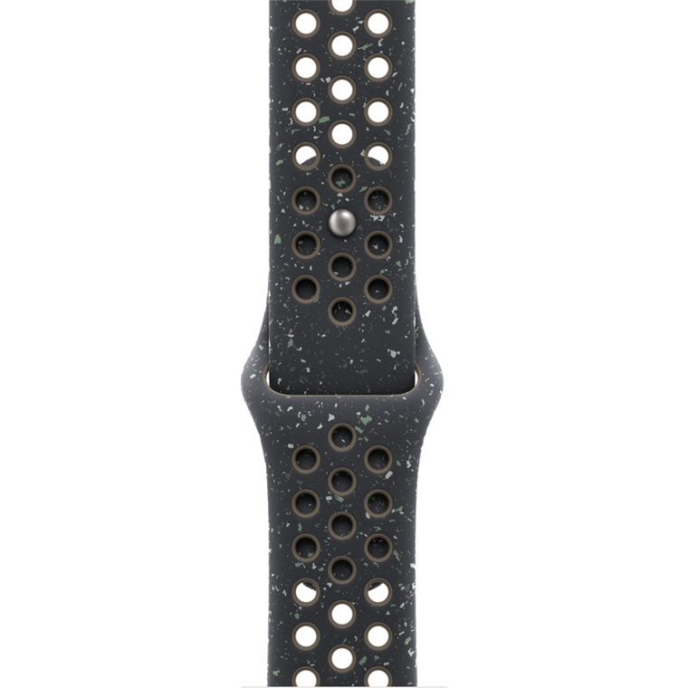 Made with compression-moulded perforations for breathability, the Nike Sport Band is durable and strong, yet surprisingly soft. It features colourful flakes that create a randomised pattern, making each band completely unique. The smooth, dense material drapes elegantly across your wrist and feels comfortable next to your skin. A new aluminium pin-and-tuck closure gives the pin a fresh matt finish.