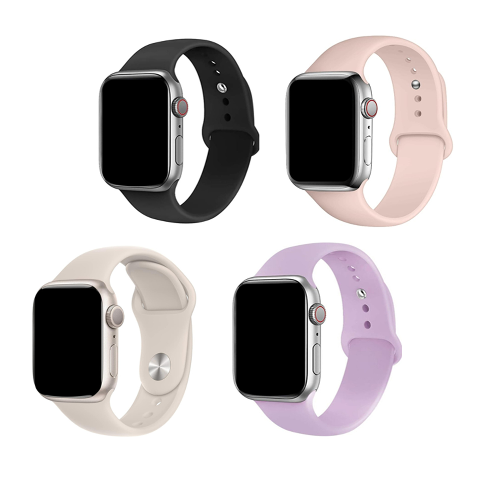 42mm/41mm/40mm/38mm - 4 Pack Silicone Sport Band for Apple Watch (Black/Starlight/Lavender/Pink Sand) , Includes S/M and M/L bands - Compatible with Apple Watch Series 11/10/9/8/7/6/SE/5/4/3/2/1/SE
