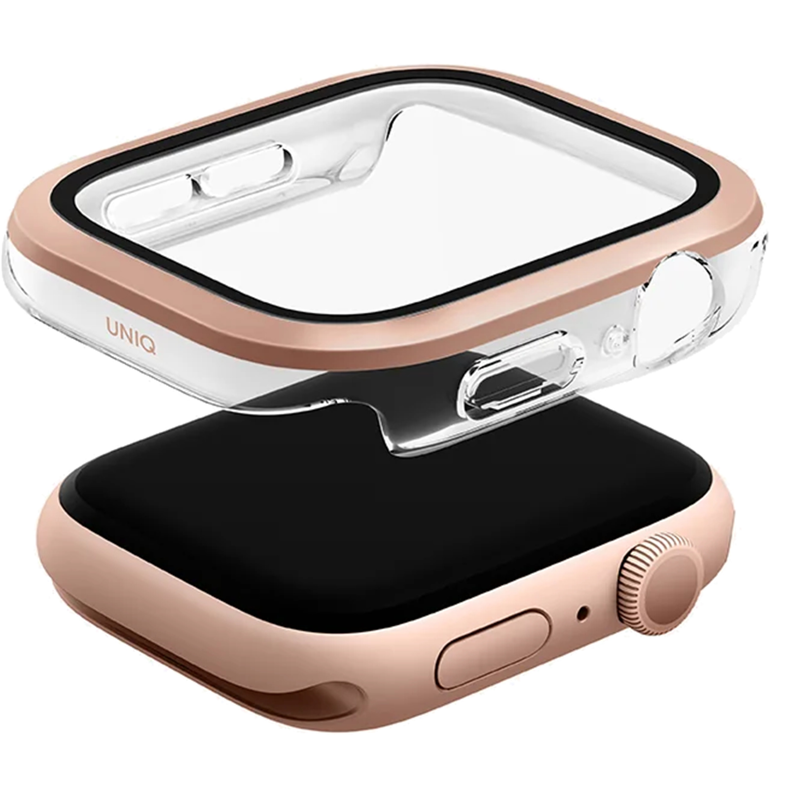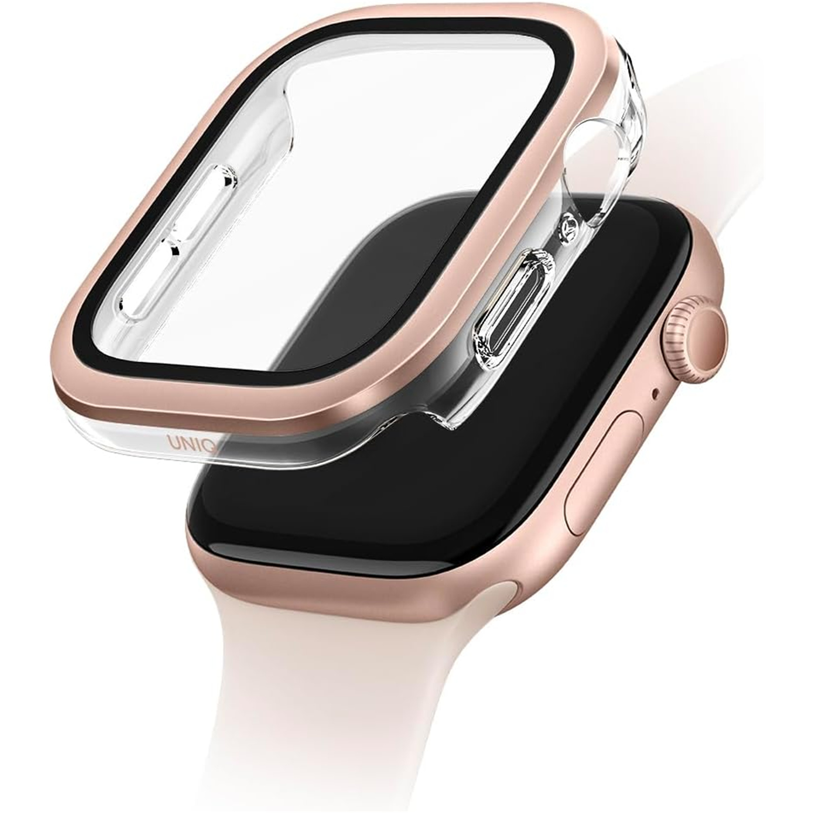 Uniq Apple Watch Series 11 (46mm) / Series 10 (46mm) Voute Watch Case - Rose Gold - 9H Curved Tempered Glass Screen Protector - Slim PC bumper