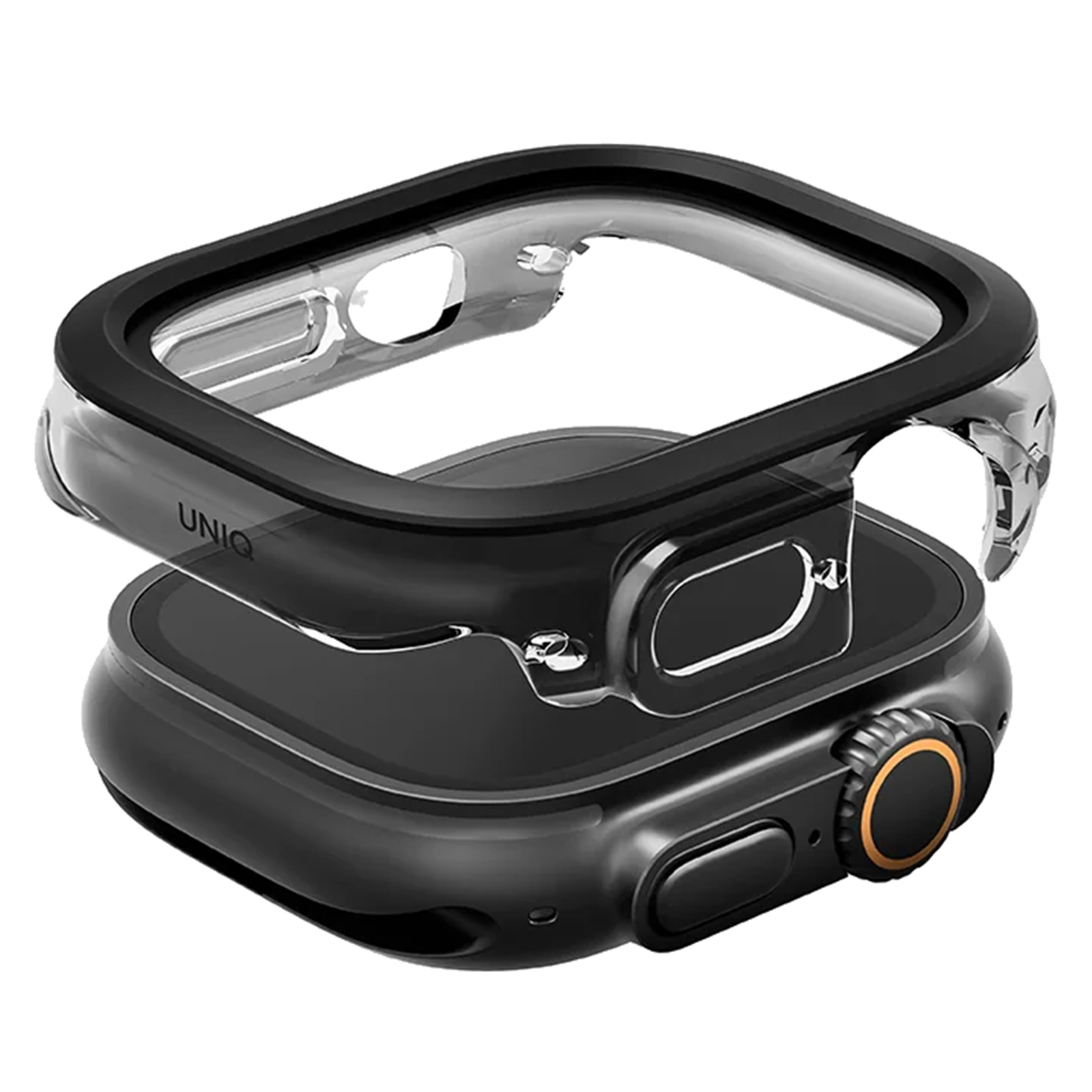 Uniq Apple Watch Ultra 3 / Ultra 2 49mm Voute Watch Case - Black, 9H Curved Tempered Glass Screen Protector, Slim PC bumper