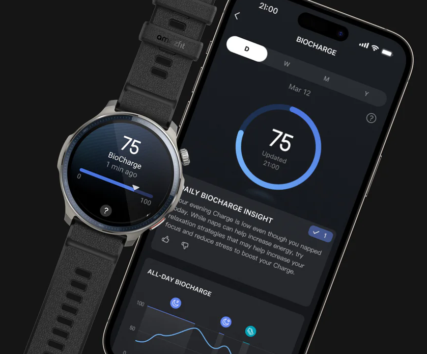 Amazfit's BioTracker™ technology provides precise, real-time monitoring⁴ of heart rate, sleep quality⁵, blood-oxygen levels, and stress, empowering you with actionable insights to optimize your health and fitness.