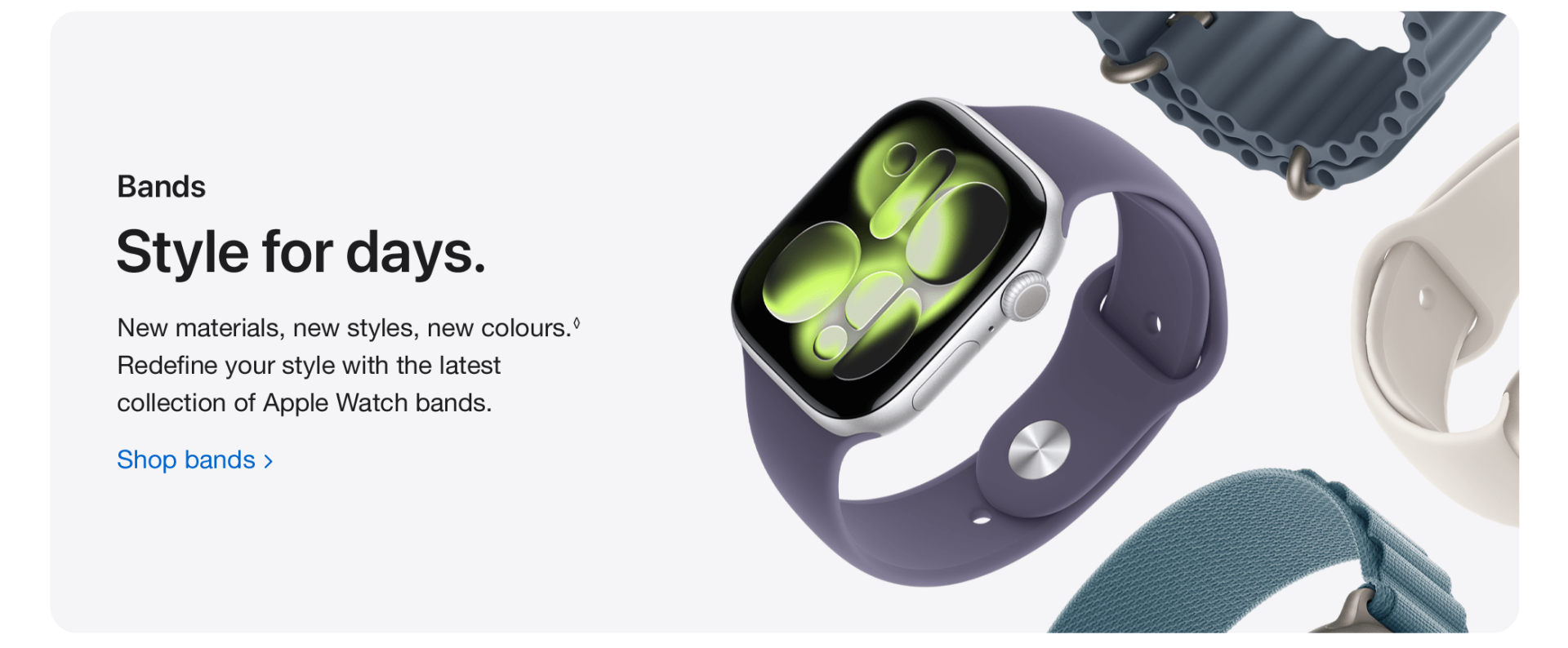 Bands: Bands shown for illustrative purposes only and subject to availability.