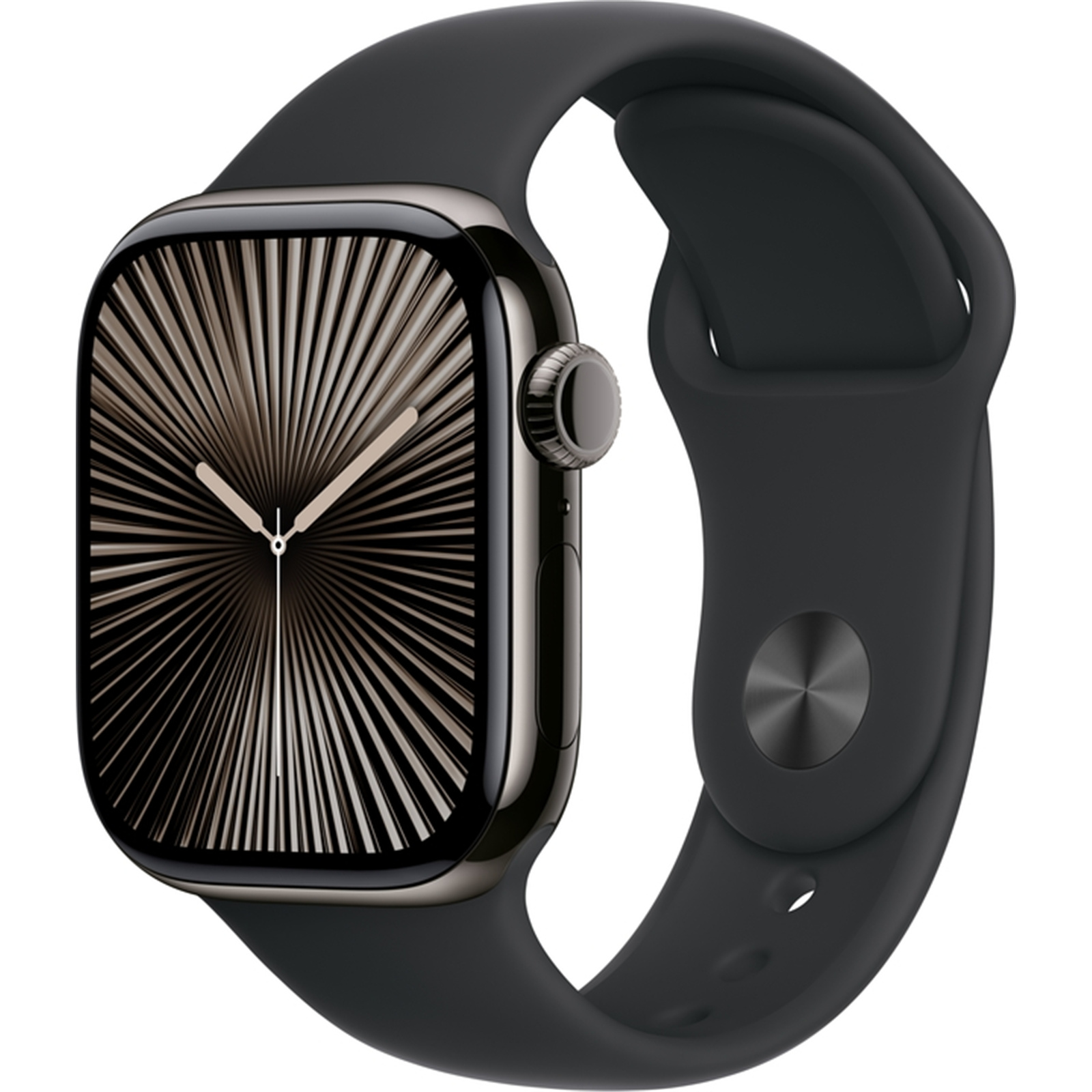 Apple Watch Series 10 (GPS + Cellular) 42mm - Slate Titanium Case with Black Sport Band - M/L