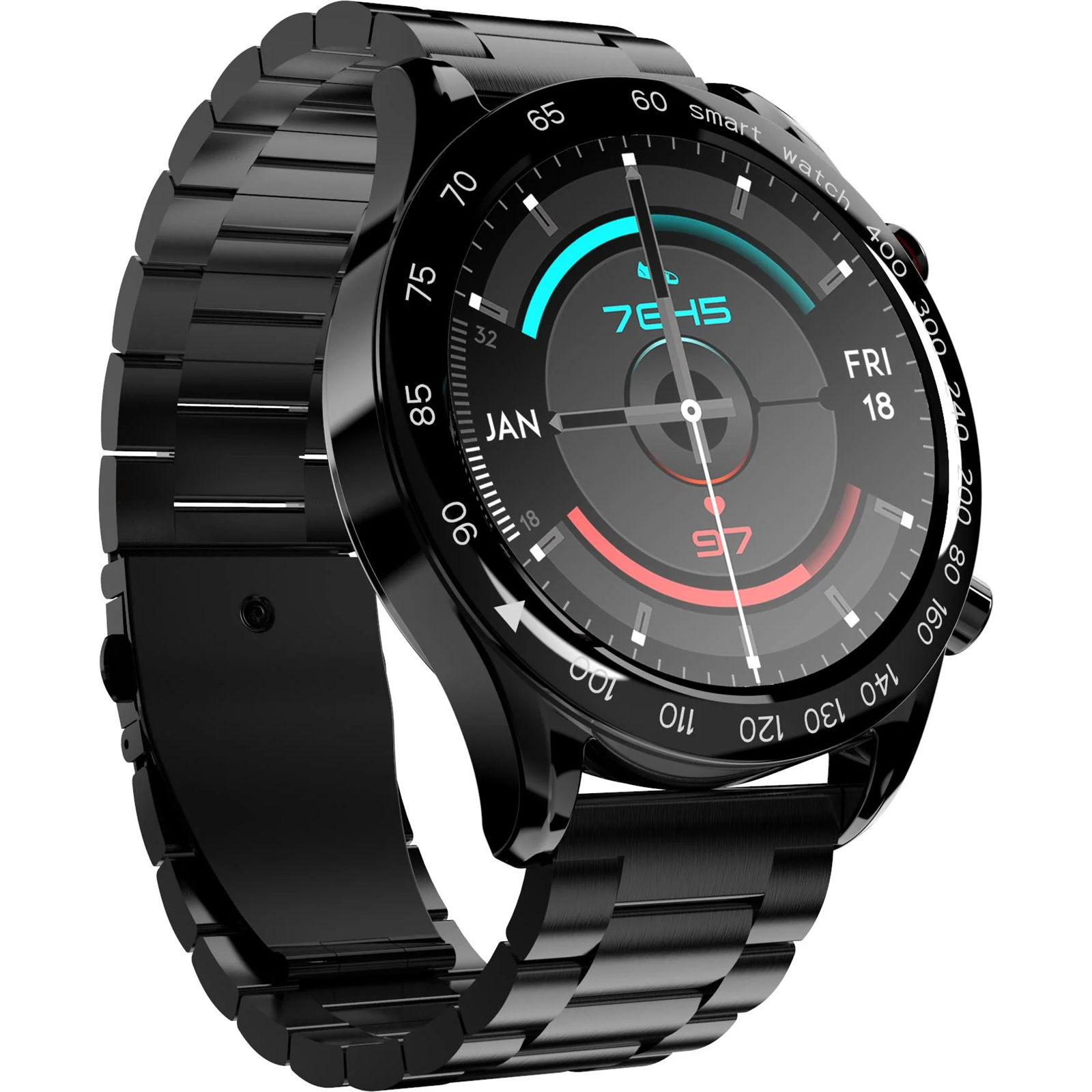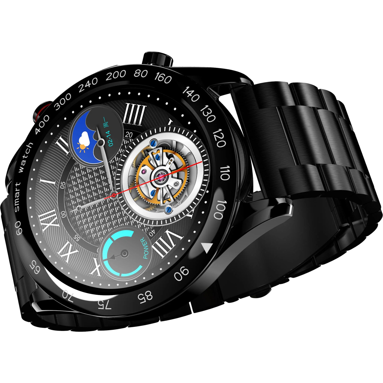 HiFuture FutureGo Pro Smart Watch - Black Stainless Steel Body - 1.32" Display - Up to 15 Days Battery Life - Heart Rate, Sleep, & Blood Oxygen Monitoring - IP68 Water Resistance