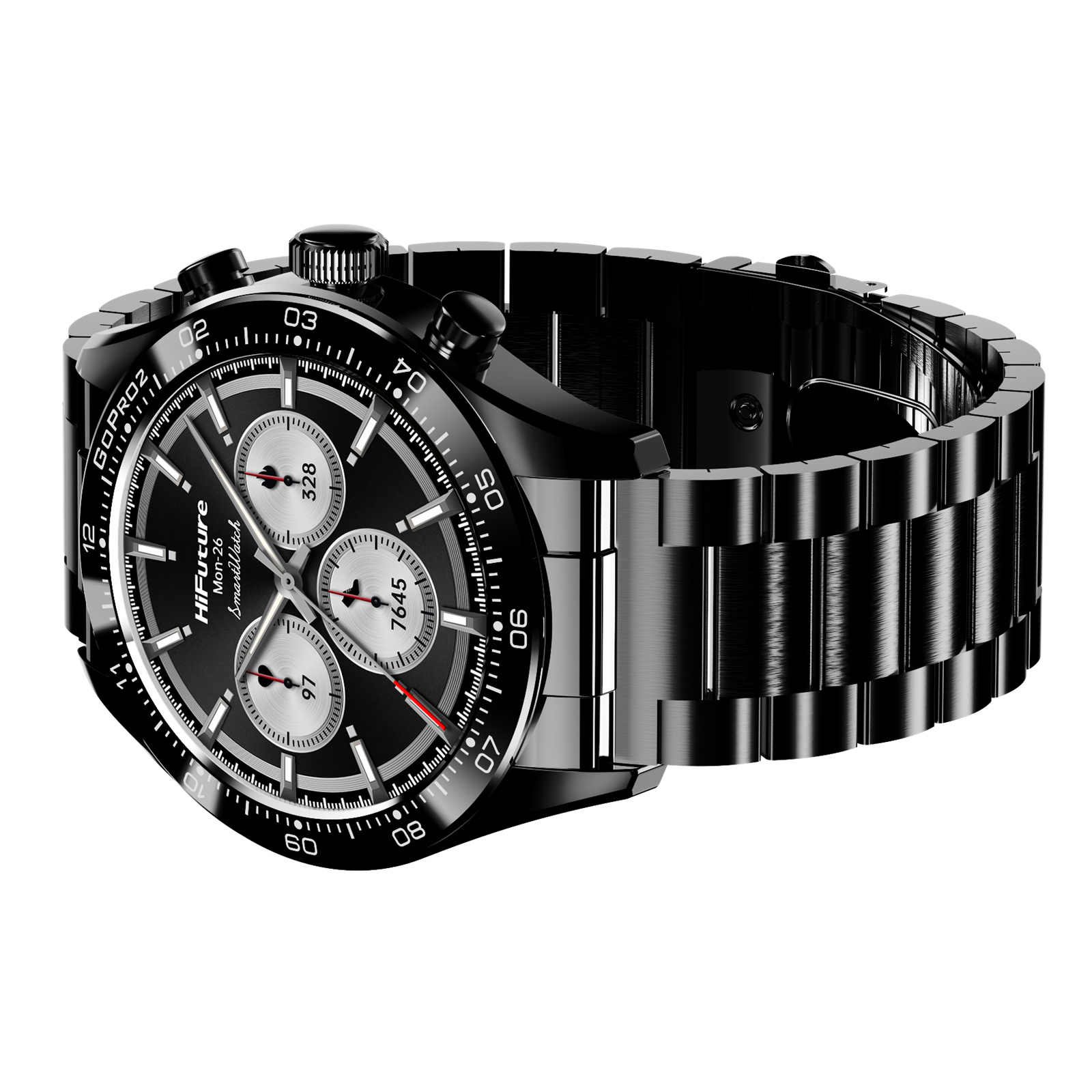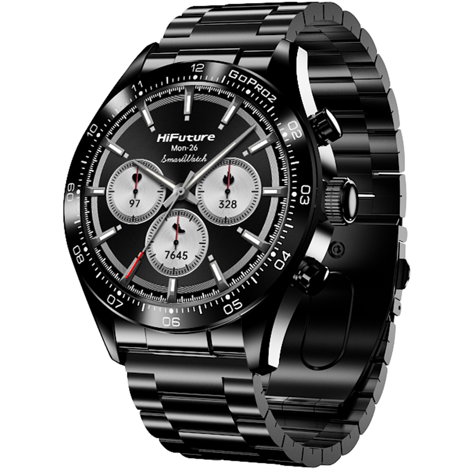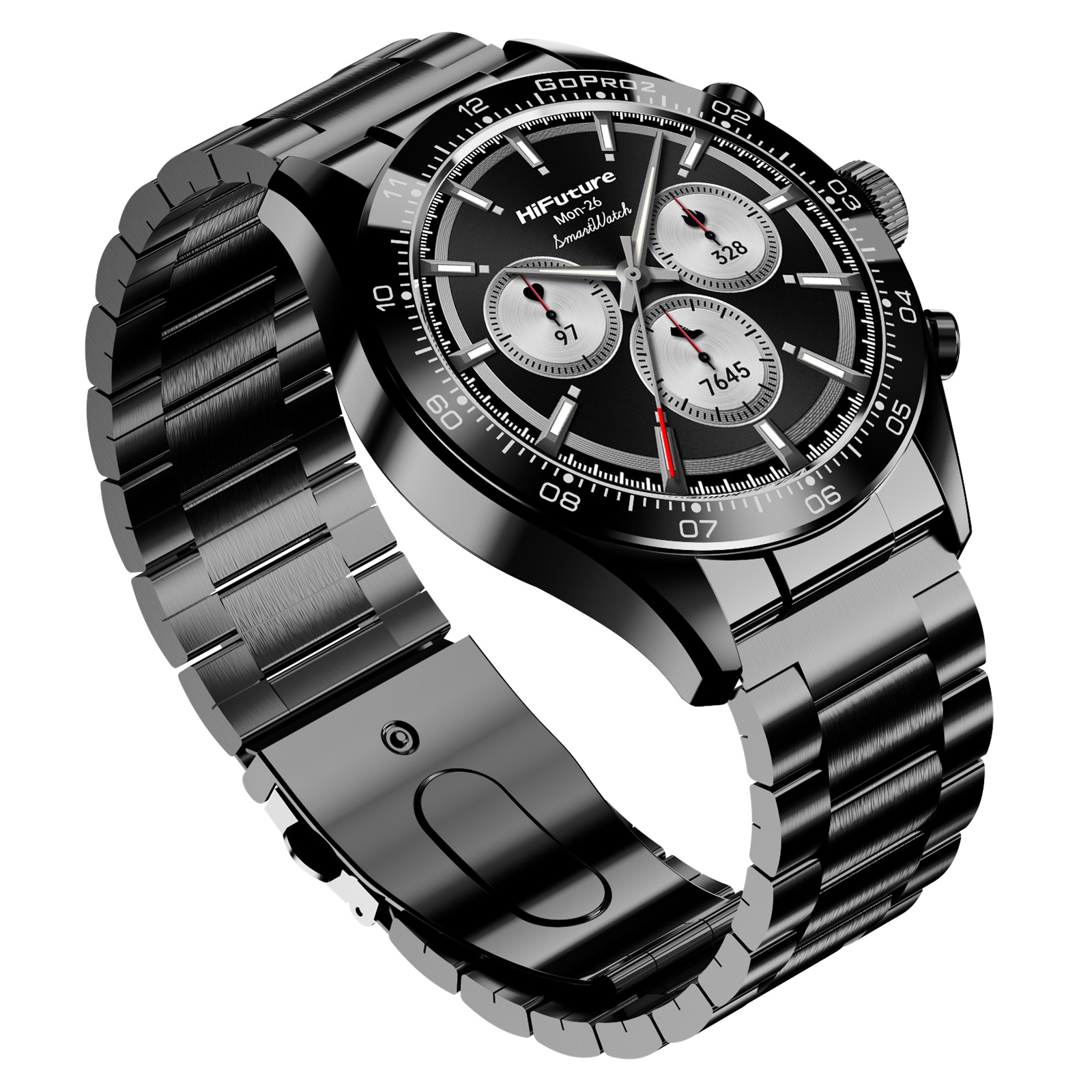 HiFuture FutureGo Pro2 Smart Watch - Black Stainless Steel Body - 1.32" AMOLED Display - Up to 10 Days Battery Life - Heart Rate, Sleep, & Blood Oxygen Monitoring - 1ATM Water Resistance