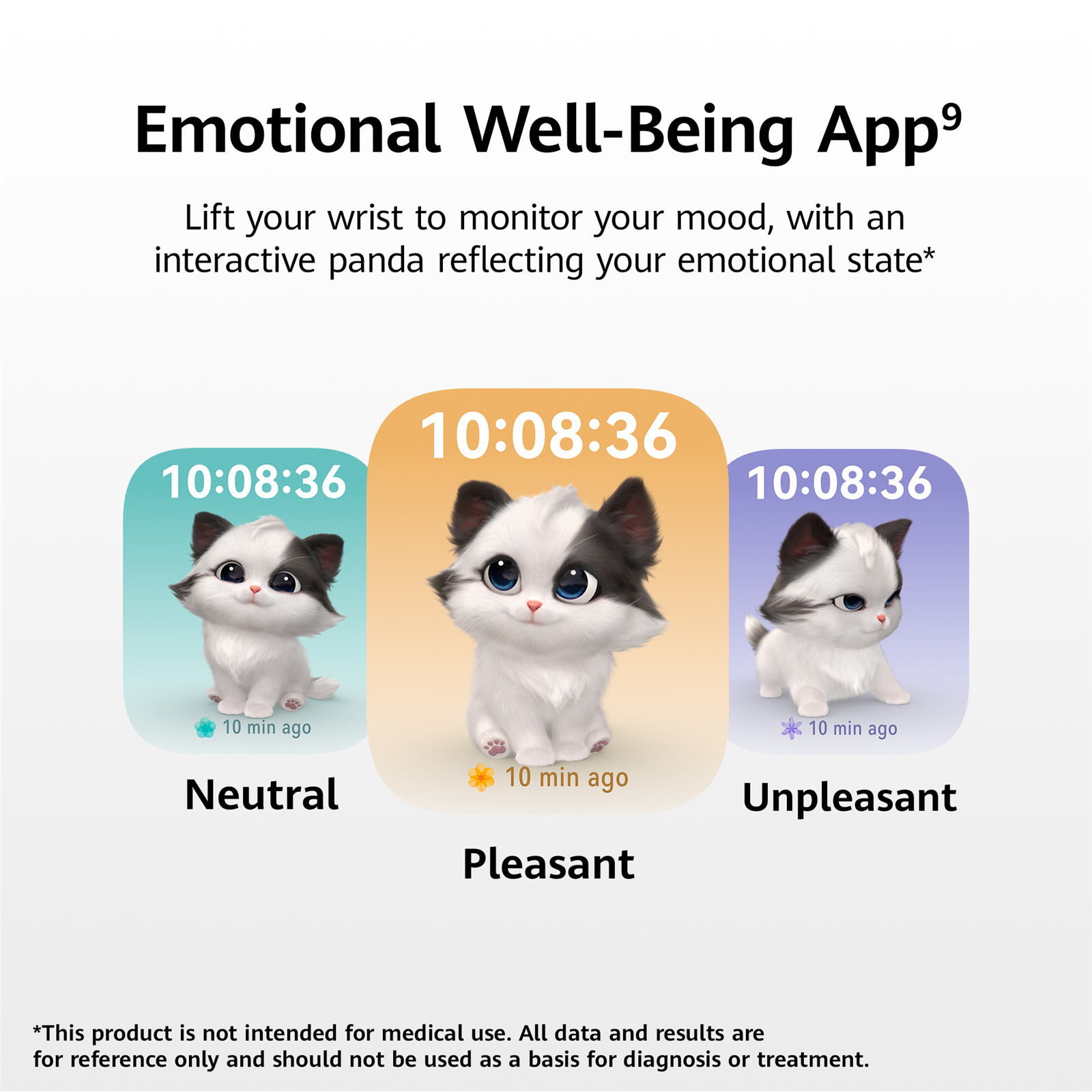 1. The Emotional Wellbeing app is not a medical device feature. The measurement data and results are for reference only and cannot be used as the basis for diagnosis and treatment. This data isn't available at certain times, such as during sleep or exercise.