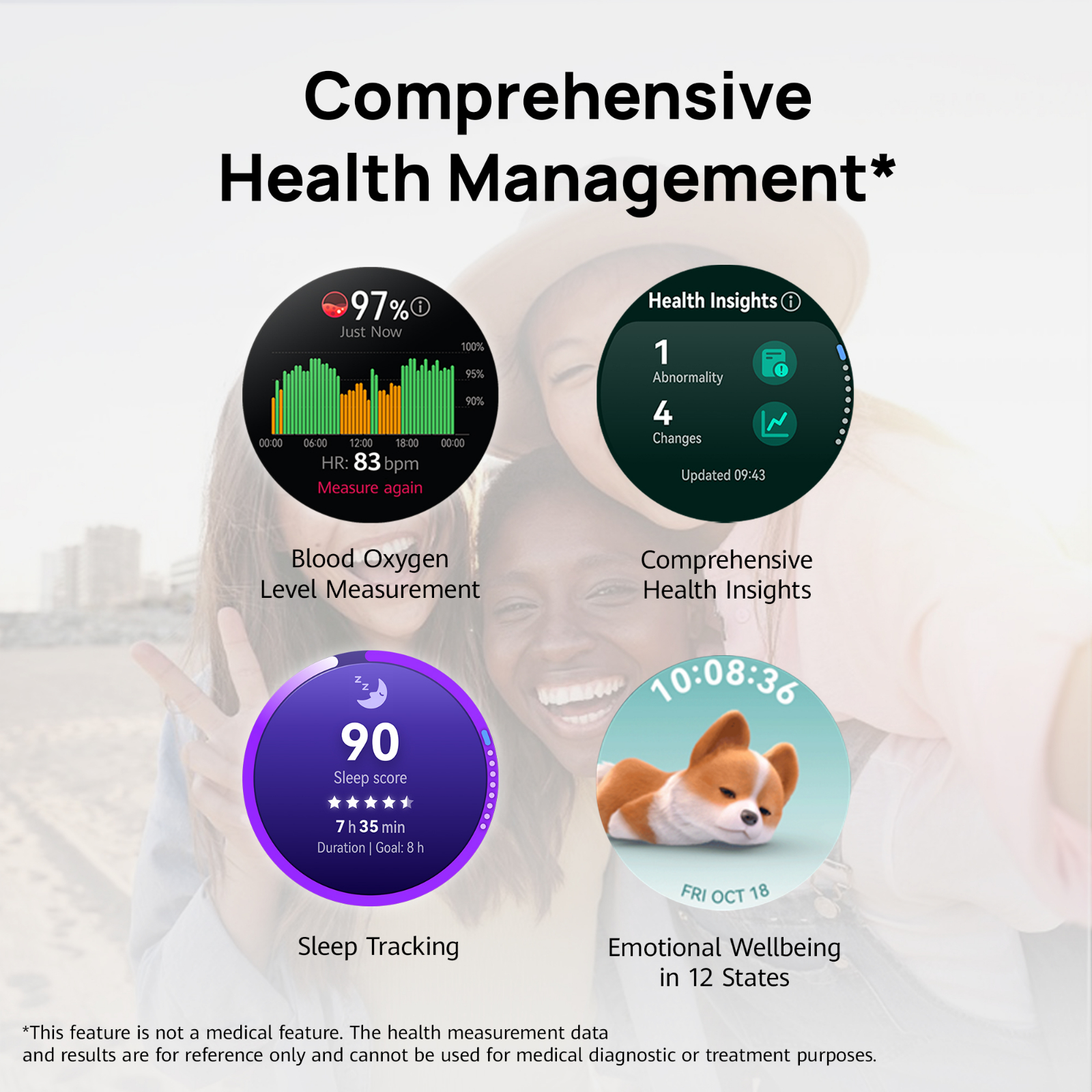 Track heart rate, sleep, HRV, SpO ₂, and more with precision. The upgraded emotional wellbeing function also detects up to 12 emotional states, giving you deeper insights into both body and mind.