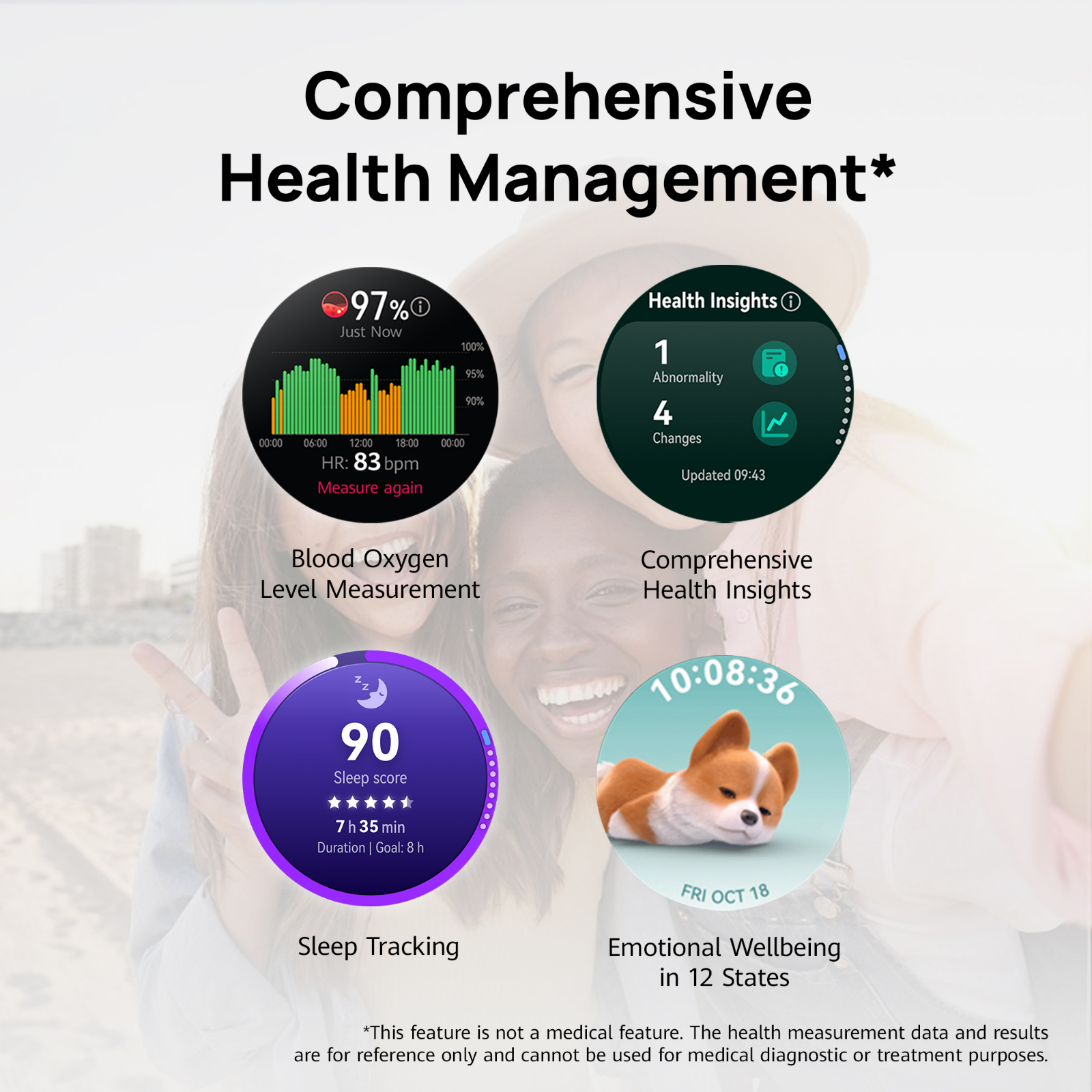 Track heart rate, sleep, HRV, SpO ₂, and more with precision. The upgraded emotional wellbeing function also detects up to 12 emotional states, giving you deeper insights into both body and mind.