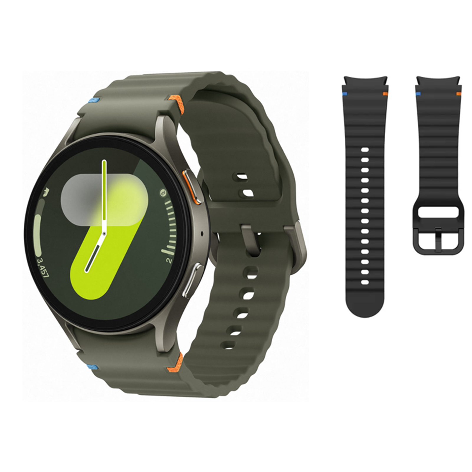 Samsung Galaxy Watch7 44mm (Bluetooth) - Khaki & Silicone Galaxy Watch 7 Strap 20mm (S/M) - Black Combo