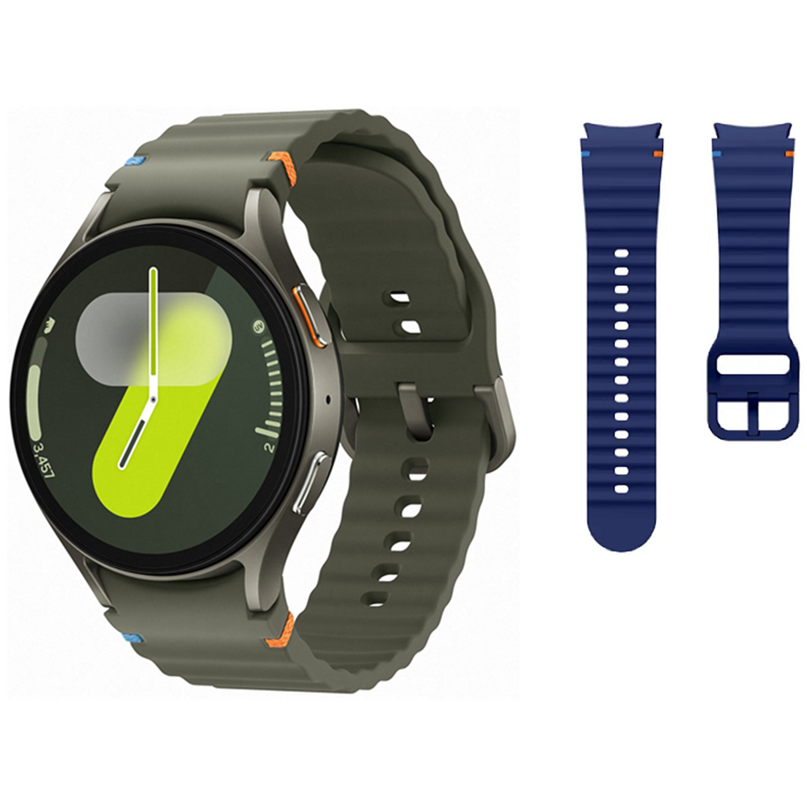 Samsung Galaxy Watch7 44mm (LTE) - Khaki & Silicone Galaxy Watch 7 Strap 20mm (M/L) - Blue Combo - Compatible with Spark Network