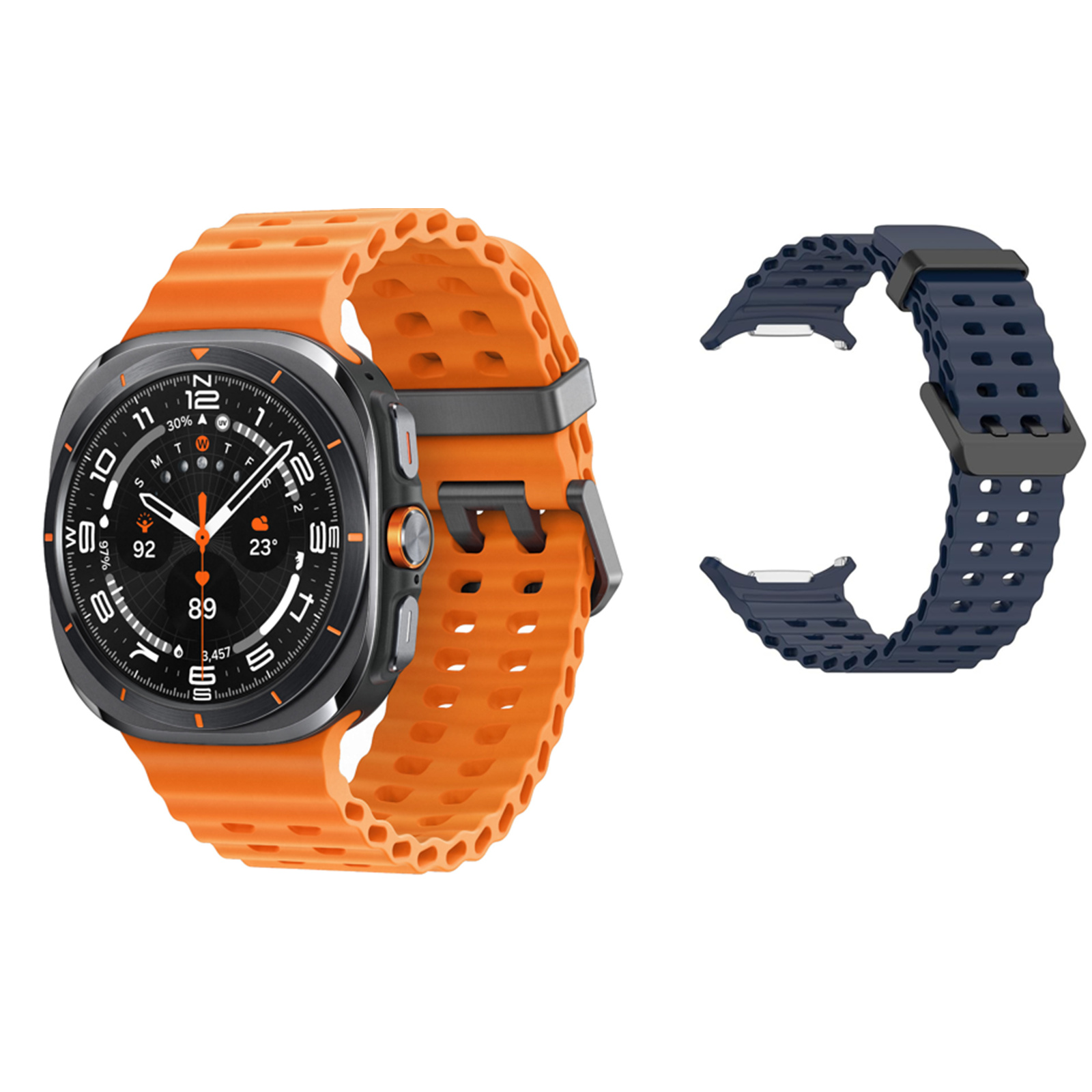 Samsung Galaxy Watch Ultra - Titanium Gray with Orange Marine Loop & Silicone Galaxy Watch Ultra Strap - Navy Blue Combo - Compatible with Spark Network -