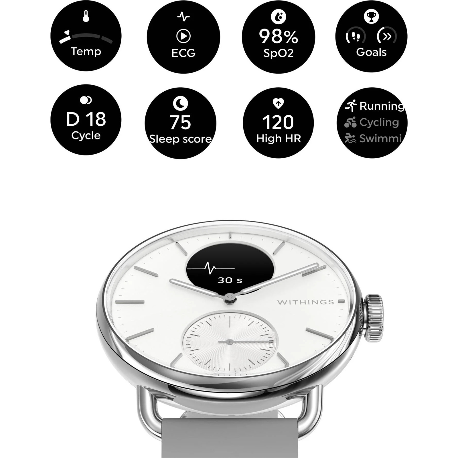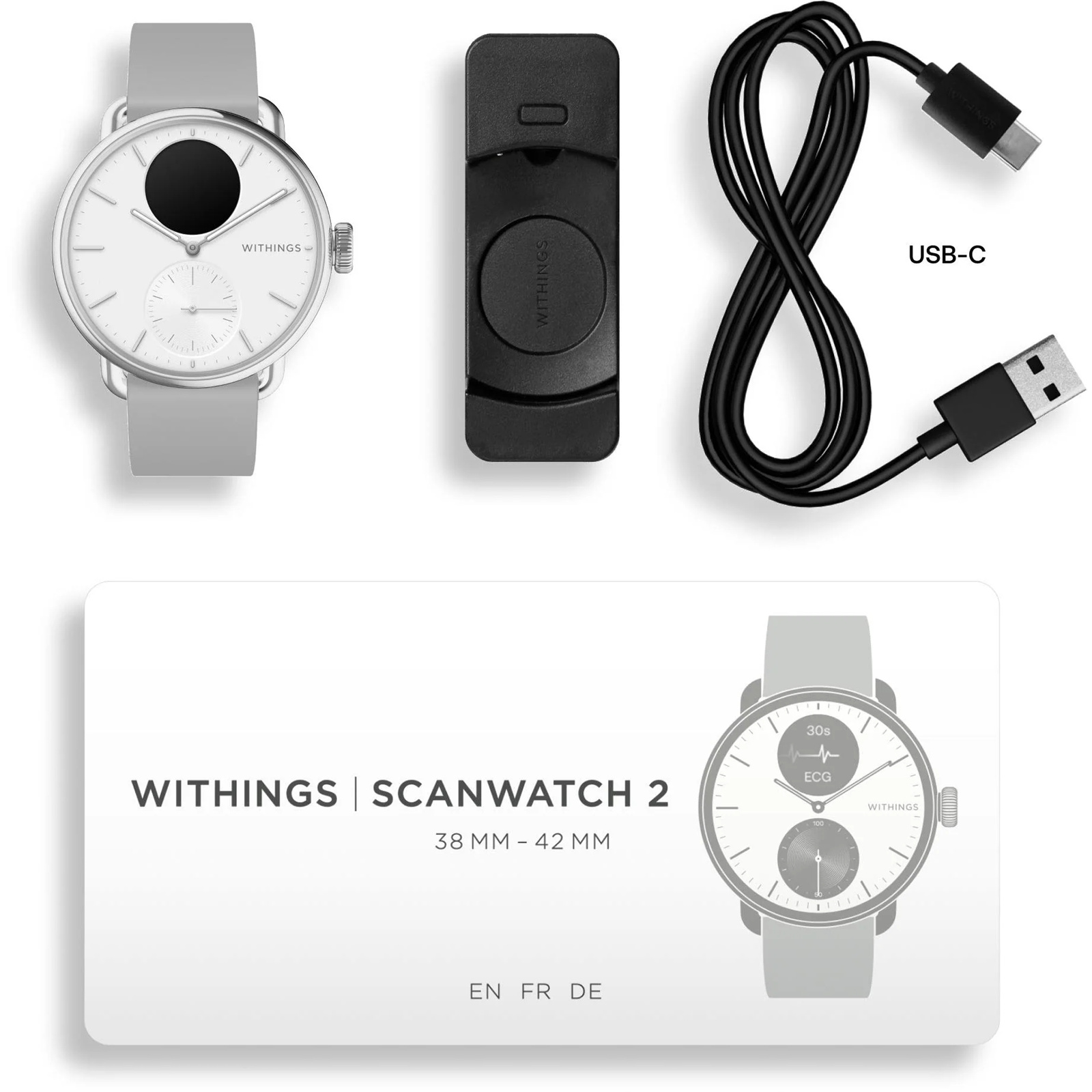 Withings Scanwatch 2 Hybrid Smartwatch 38mm - White Up to 35 Days Battery Life - 5ATM Water Resistance - 24/7 Advanced Health Tracking with TempTech24/7 Module - Sleep Tracking - ECG - Activity Tracking and Workout Modes