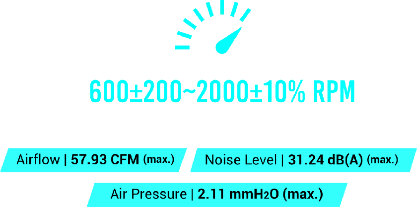 FAN: DC 6.0-13.8 V | LED: DC 4.5-5.5 V