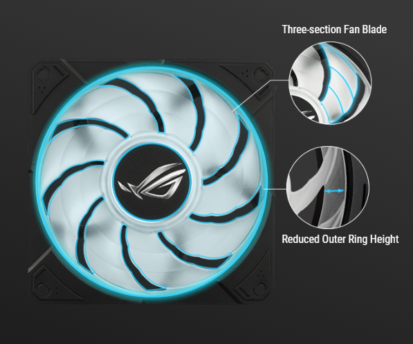 The significantly upgraded ROG ARGB Fans provide high airflow and static pressure with noise optimization, offering users the best balance between performance and acoustics.
