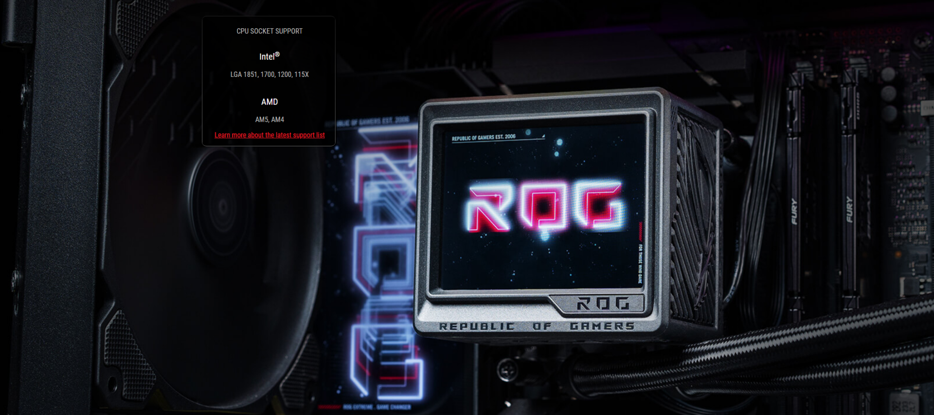 Do you prefer banners or clan logos? Choose one designed by ROG, or put your own text or JPEG file on proud display at the heart of your rig.