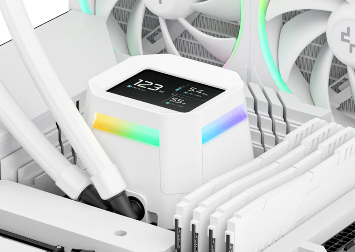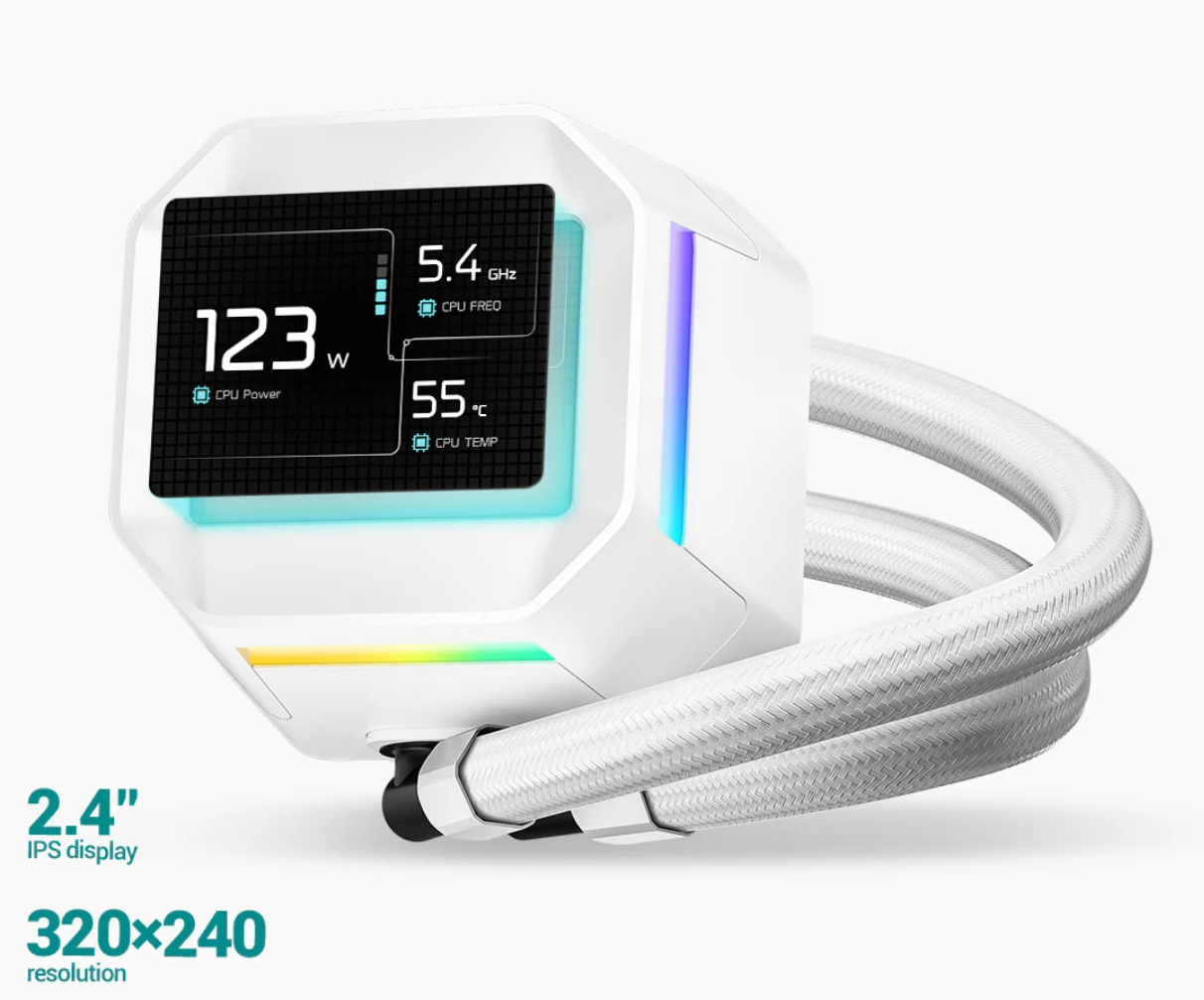 DEEPCOOL LM360 White 360mm ARGB Liquid Cooler with 2.4' IPS display For Intel LGA 1851/1700/1200/1151/1150/1155, AMD AM5/AM4