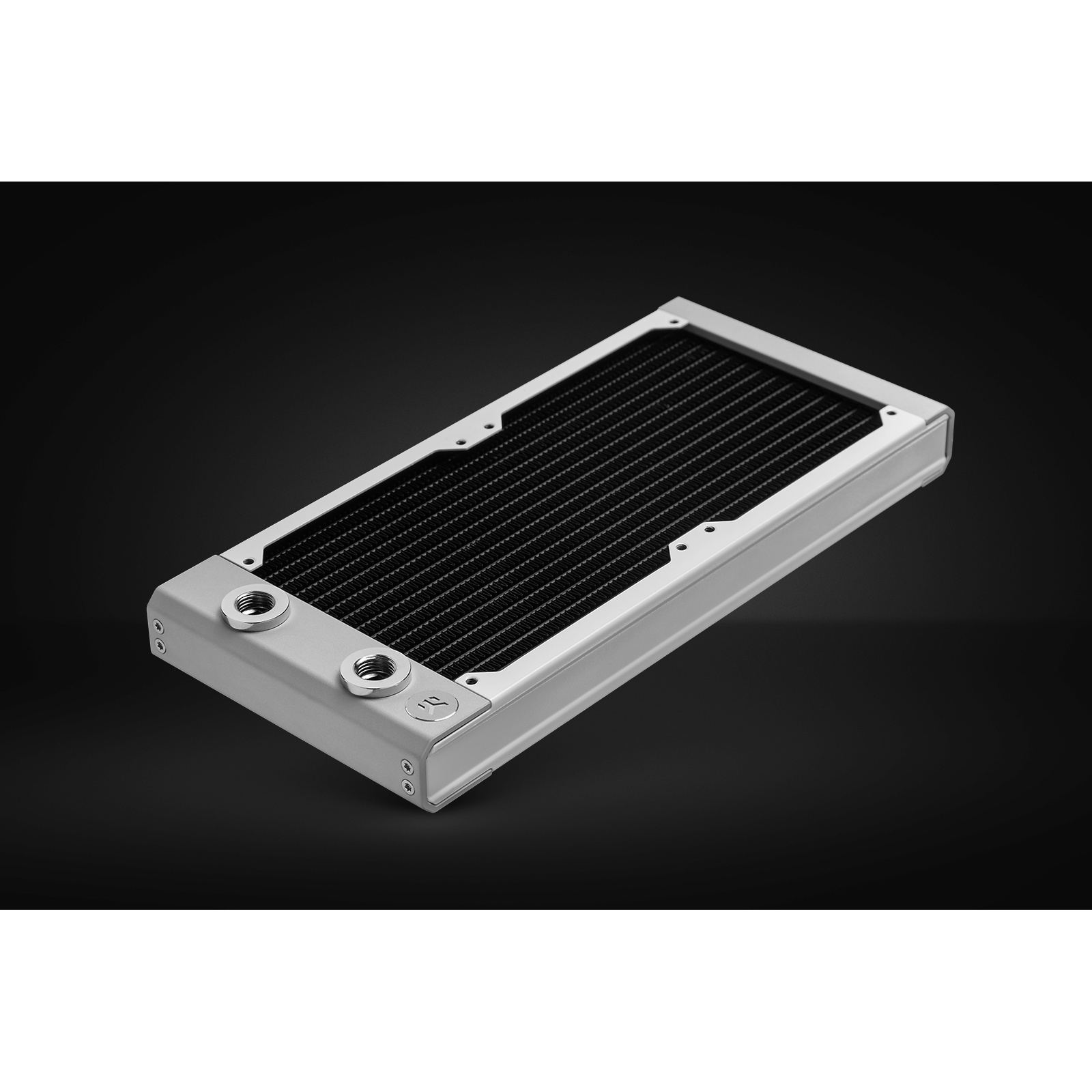 With the supplied screws, this radiator is compatible with 120mm fans that have a standard 25mm thickness. EK recommends using EK fans or similar ones with sealed-edge frames. This classic yet effective square shape of the fan casing provides optimal performance in either the pull (suction) or push (pressure) regime without any hydraulic losses, thus ensuring the optimal cooling capacity of your liquid cooling radiators.