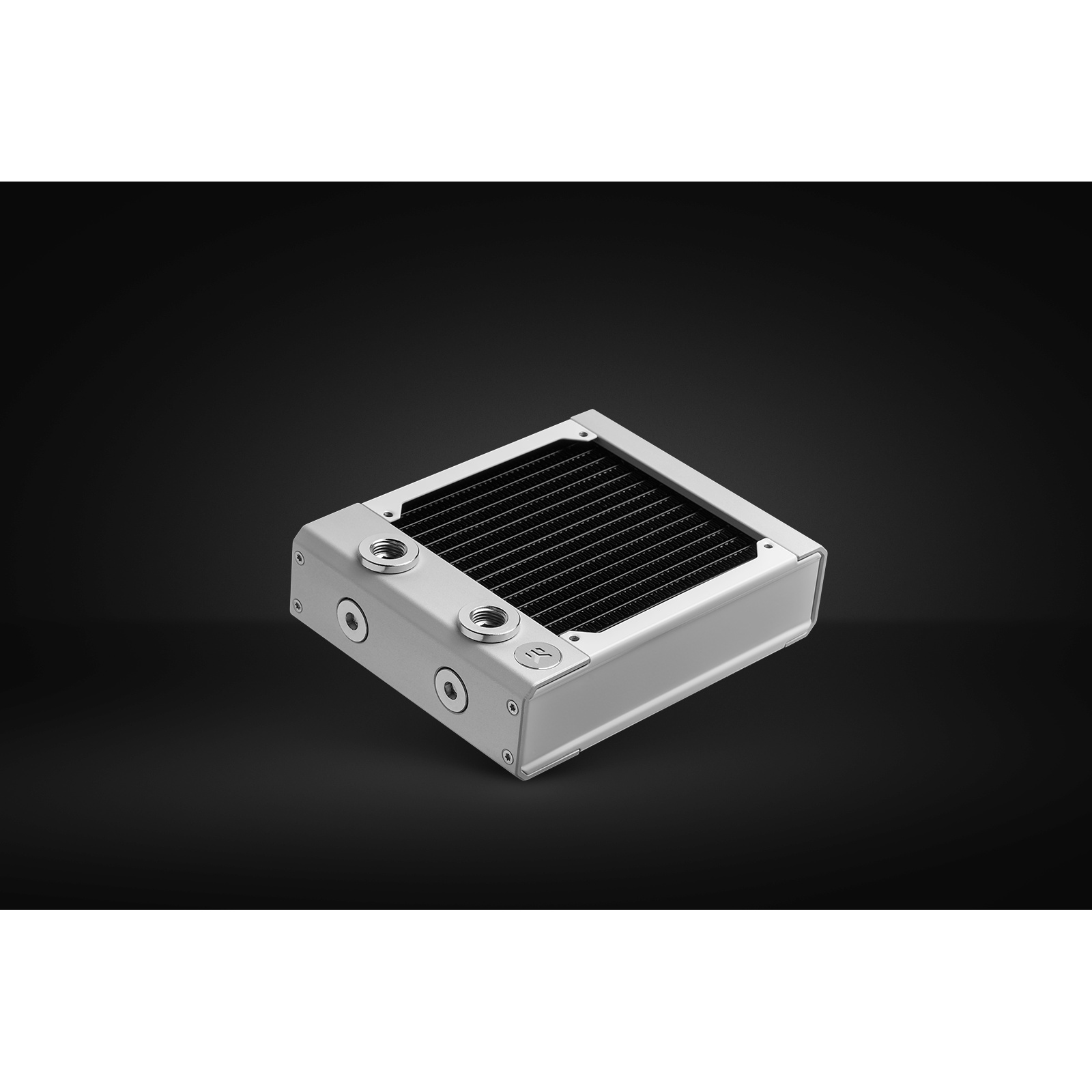 Thick, extruded aluminum end caps with a contrasting silver finish give the radiator a premium look and feel. They cover the internals and join the stamp-pressed side plates, creating a rigid structure that is pleasant to handle. The stainless-steel side plates are coated with a durable semi-matte white paint, while the fins themselves have a special black matte coating with a high thermal conductivity coefficient. The shade of white is carefully picked to match some of the most popular white cases on the PC market.