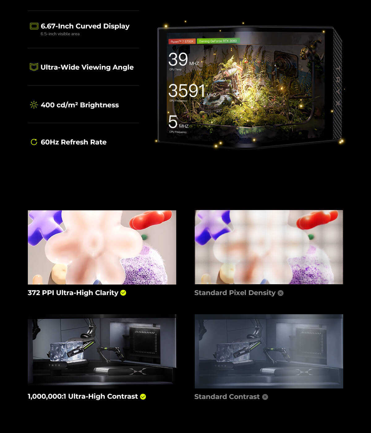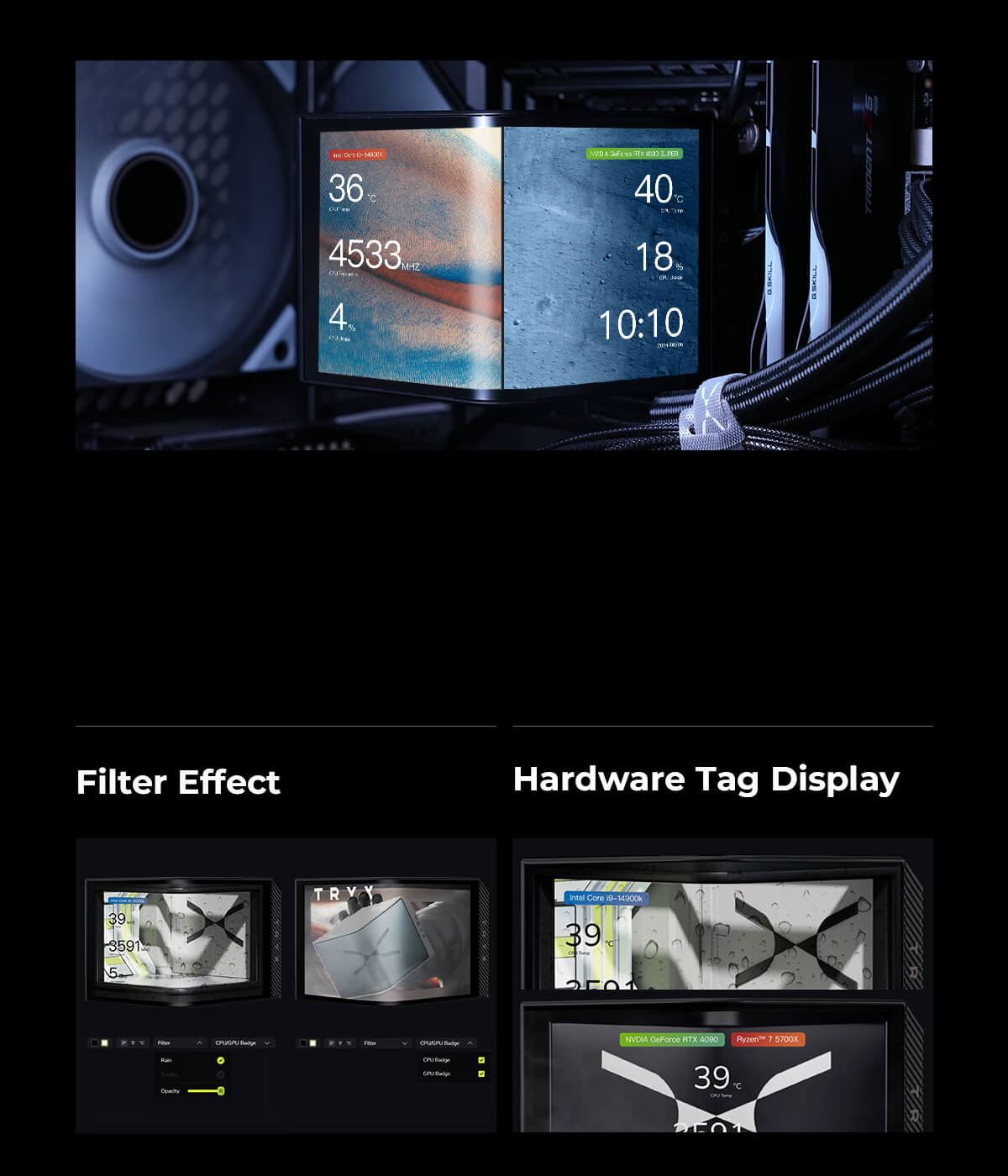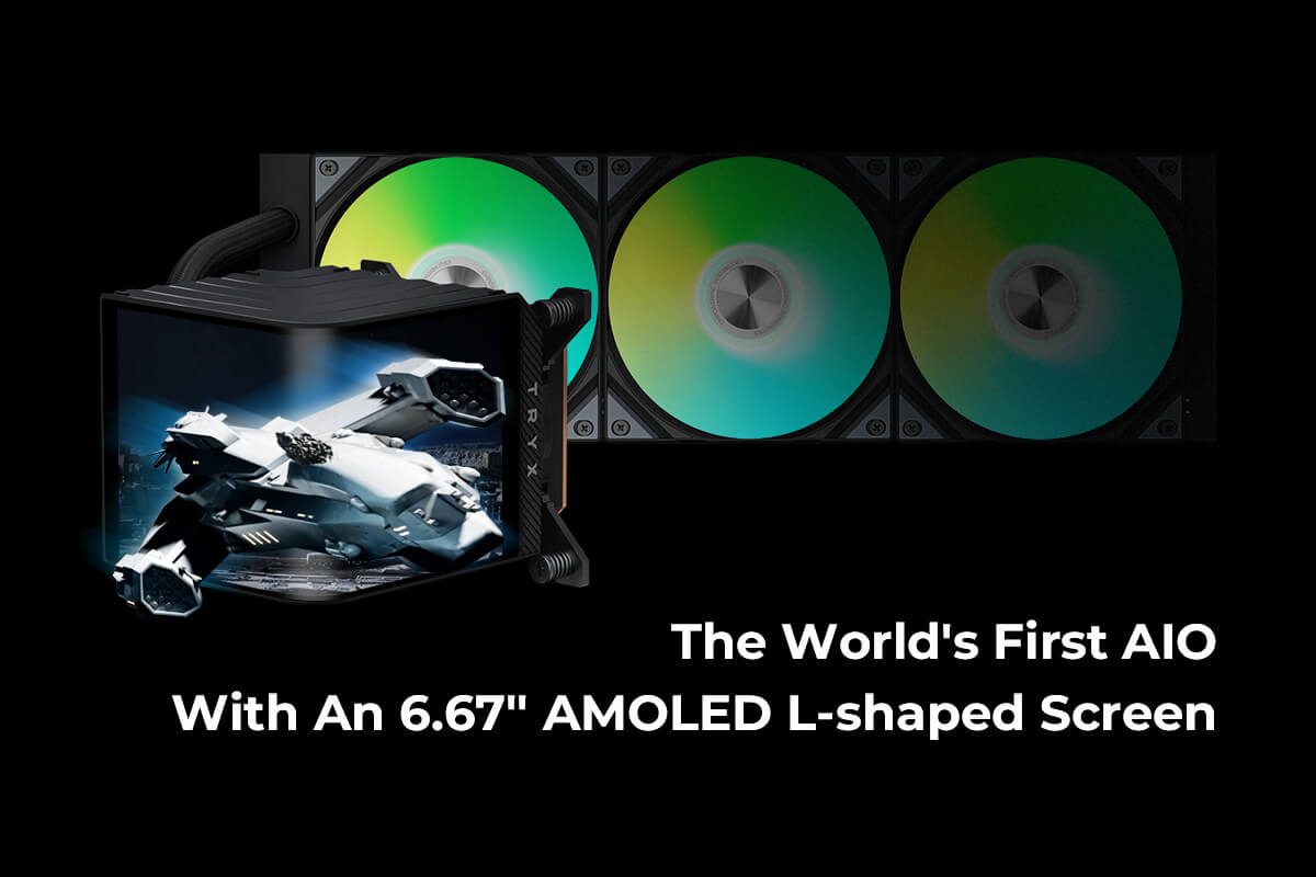 TRYX Panorama 360mm Black ARGB 360mm AiO Water Cooling With 6.5 inch L-Shaped AMOLED Screen With 2K Resolution,Support Intel LGA 1851/ 1700 / 115X, AMD AM5 / AM4