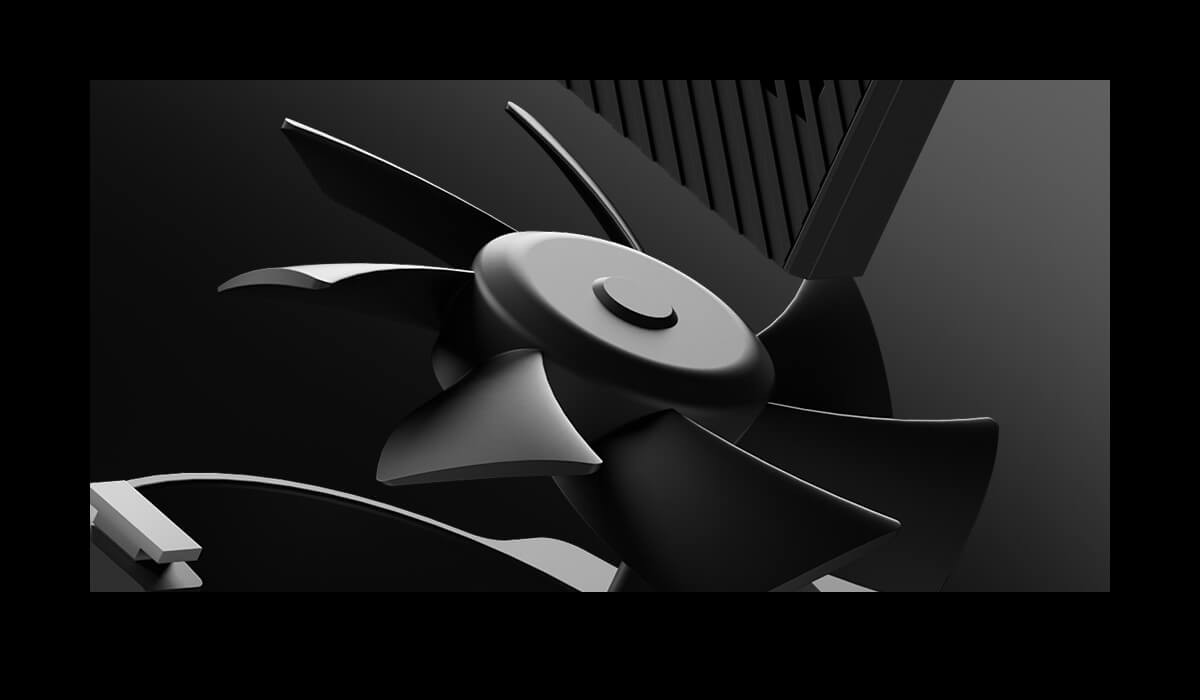 The fan beneath the screen provides additional cooling for the motherboard's VRM, enhancing power delivery stability for the platform.