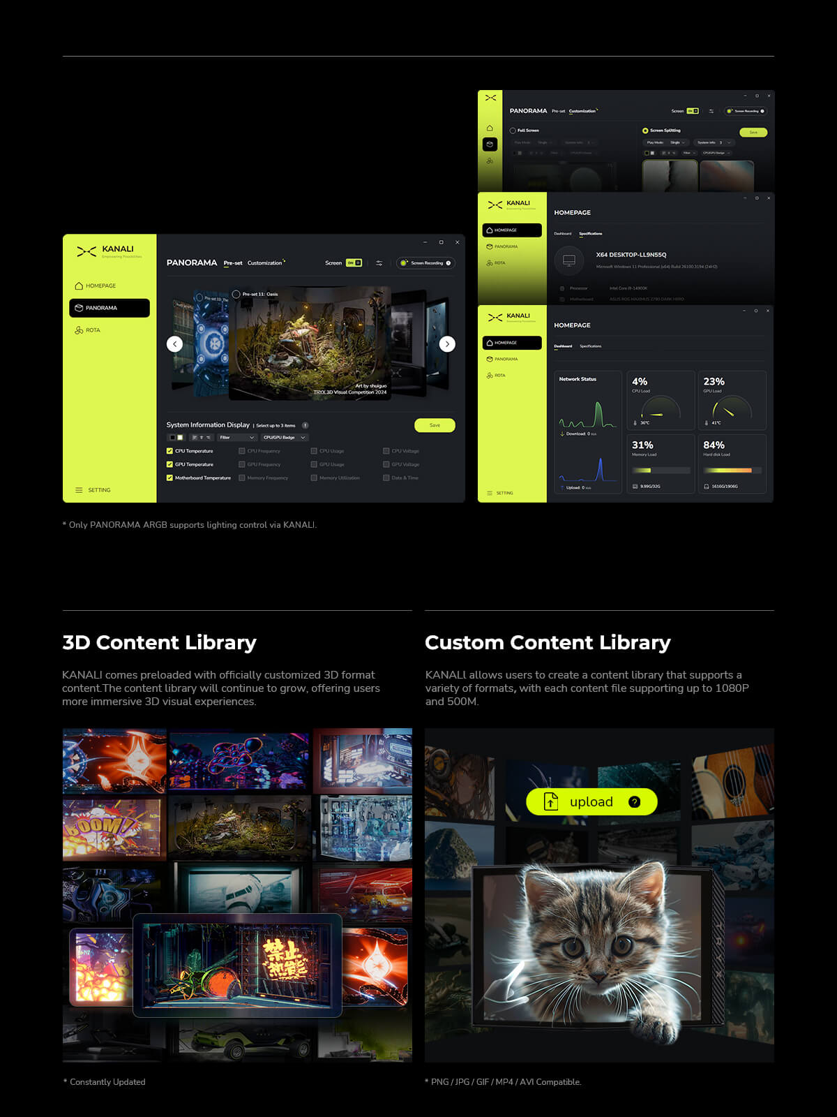 Display settings, fan speed control, and ARGB effects can all be centrally configured through the KANALI Software Center.