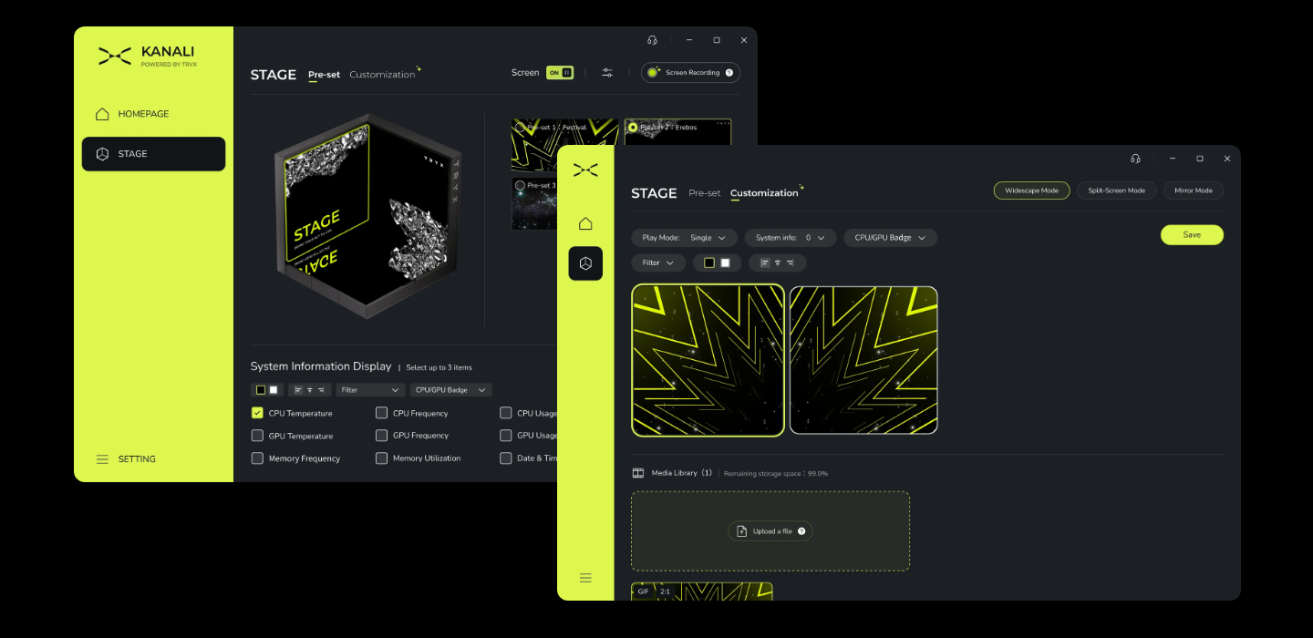 STAGE delivers a powerful dual-screen system, tailored for gamers seeking standout custom builds.