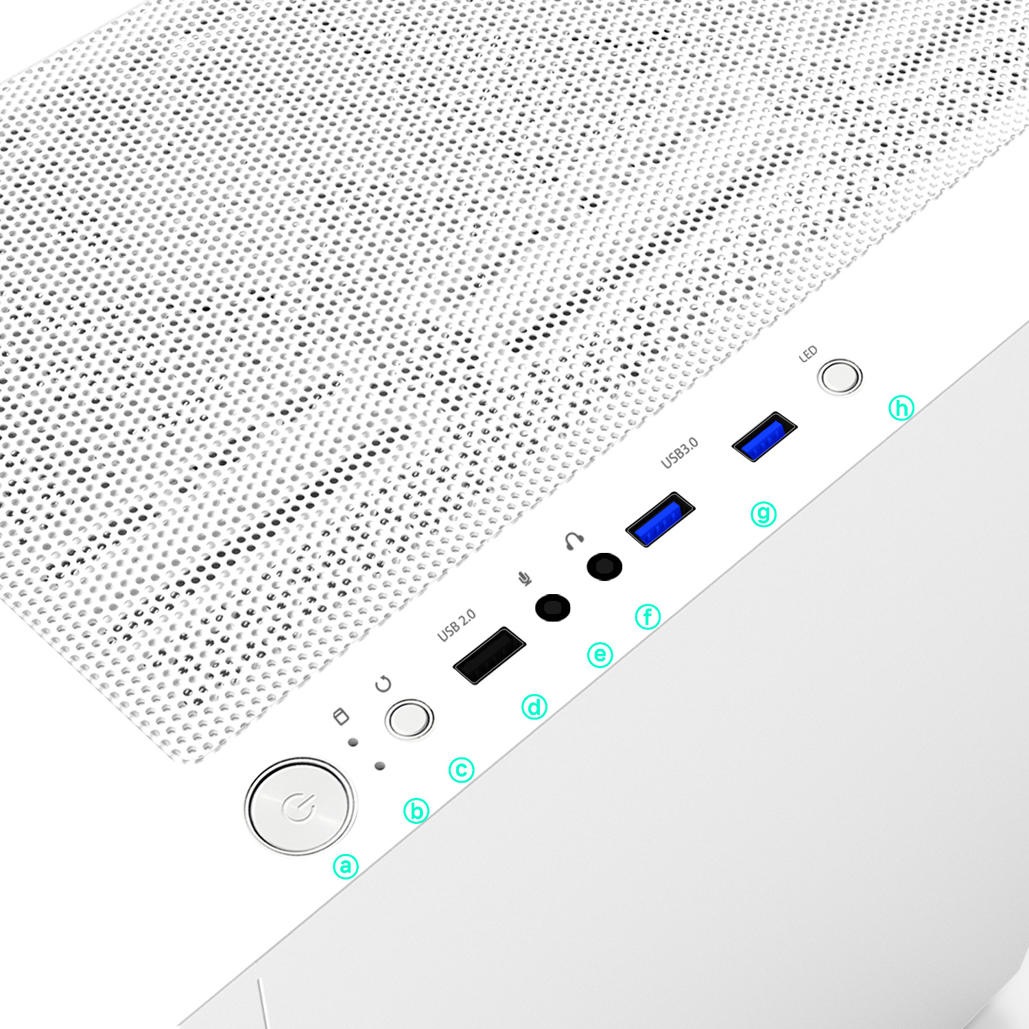 1 x USB 2.0, 2 x USB 3.0, MIC, Audio, LED Button