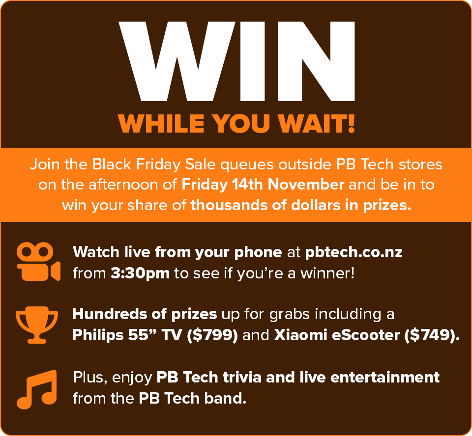Plus, win while you wait by joining the Black Friday queues outside PB stores on November 14th. The first 500 customers in line at each store get a ticket to the live prize draw from 3:30PM to 5PM, with hundreds of prizes including a Philips 55" 4K TV worth $799 and a Xiaomi eScooter worth $749.