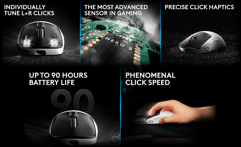 Experience a breakthrough in mouse engineering that eliminates microswitches with the new Logitech G PRO X2 SUPERSTRIKE Lightspeed wireless gaming mouse powered by Haptic Inductive Trigger System (HITS). No latency. No lag. No compromise. Just instant, ultra-responsive performance engineered to keep you ahead of every play. This is the new standard in winning clicks your opponents won’t see coming.